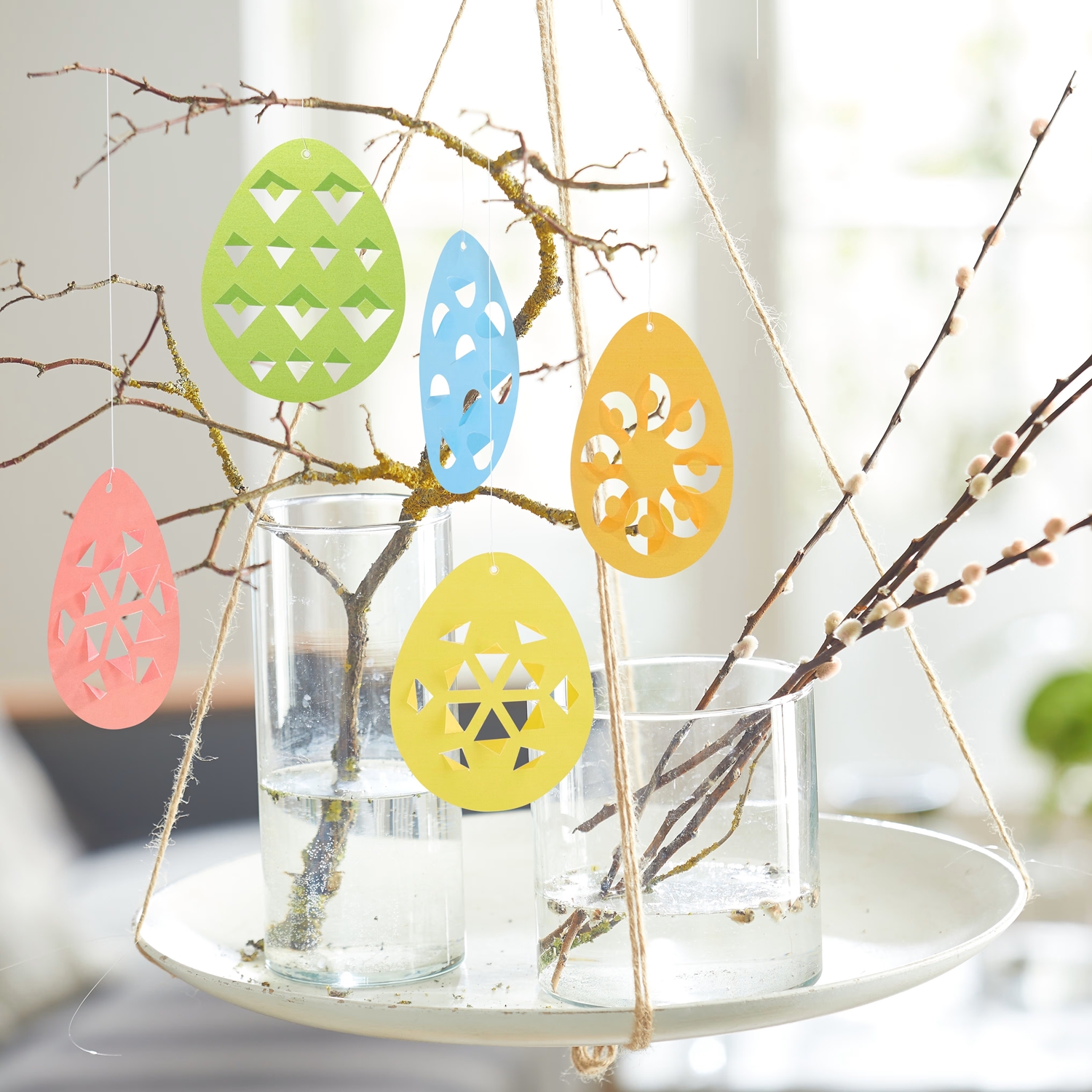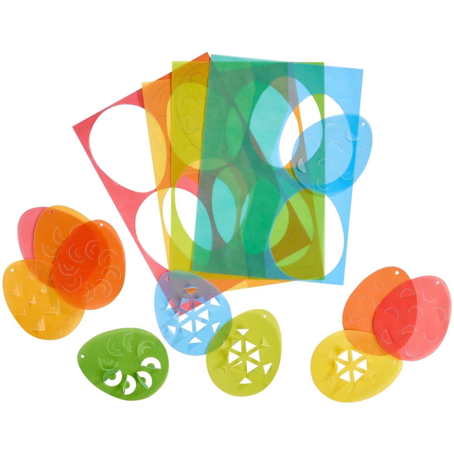 Ei, ei, ei – bei so viel kreativem Bastelspaß staunt sogar der Osterhase! Einfach jedes Ei aus dem vorgestanzten Transparentpapierbogen lösen und dann das Innere jeweils entlang der vorgedruckten Linien falten. So entstehen nicht nur ganz individuelle Kunstwerke – Kinder ab 3 Jahren erweitern ganz nebenbei auch noch ihre Falttechniken.
