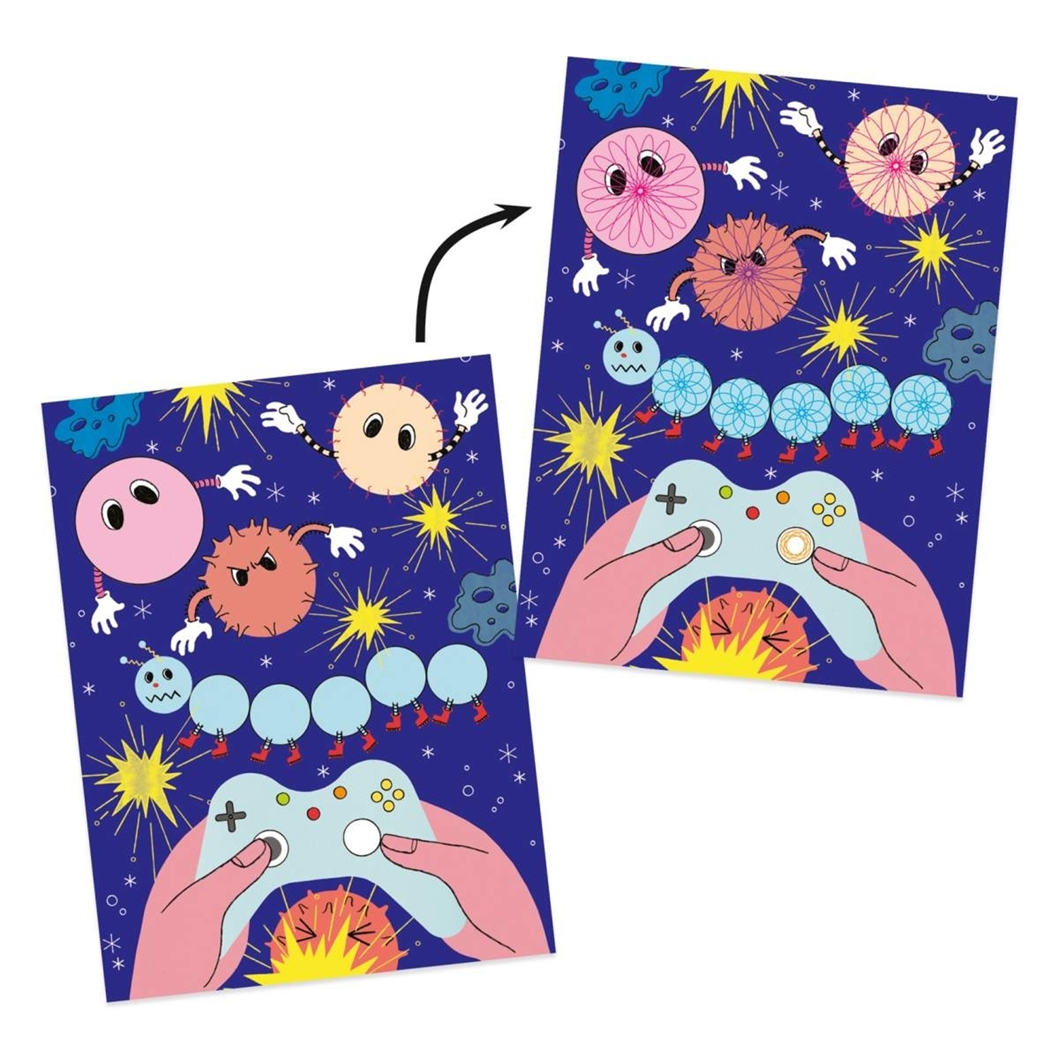 Ein Malset, um schöne bunte Spiralen zu zeichnen und so die Vorlagen aus dem 30-seitigen Block mit Bildern zu 10 verschiedenen Themen zu bemalen. Eine klassische Aktivität, die von Djeco überarbeitet wurde: Dank cleverer Werkzeuge kann man Spiralen malen, ohne zu verwackeln! Das Kind legt sein Blatt auf die Metallplatte und setzt dann den Magnetrahmen auf, in den das Zahnrad eingefügt wird. Mit seinem Stift fährt es den Kreis entlang, um ganz mühelos eine Rosette zu zeichnen, ohne den Rahmen festhalten zu müssen.