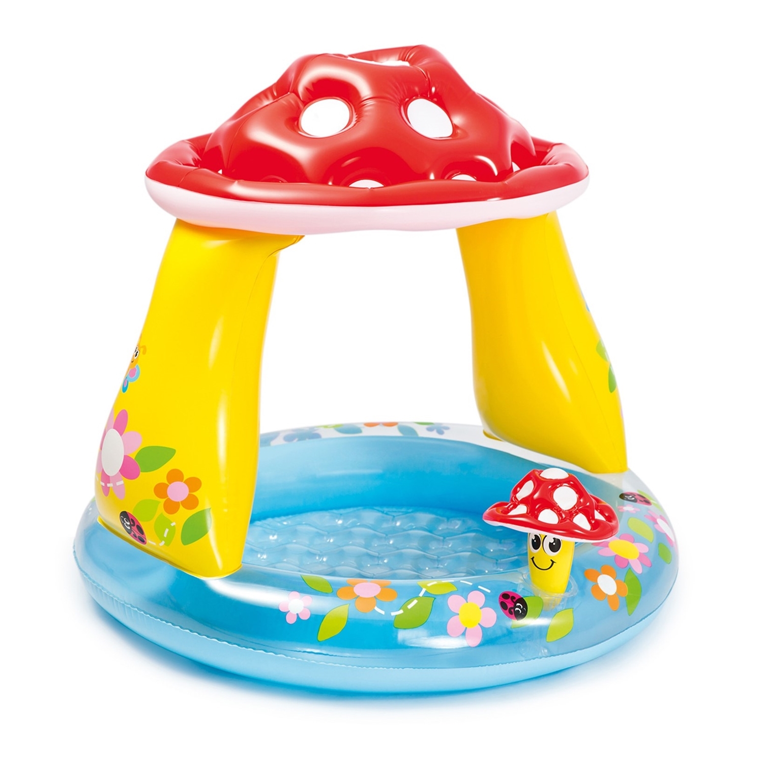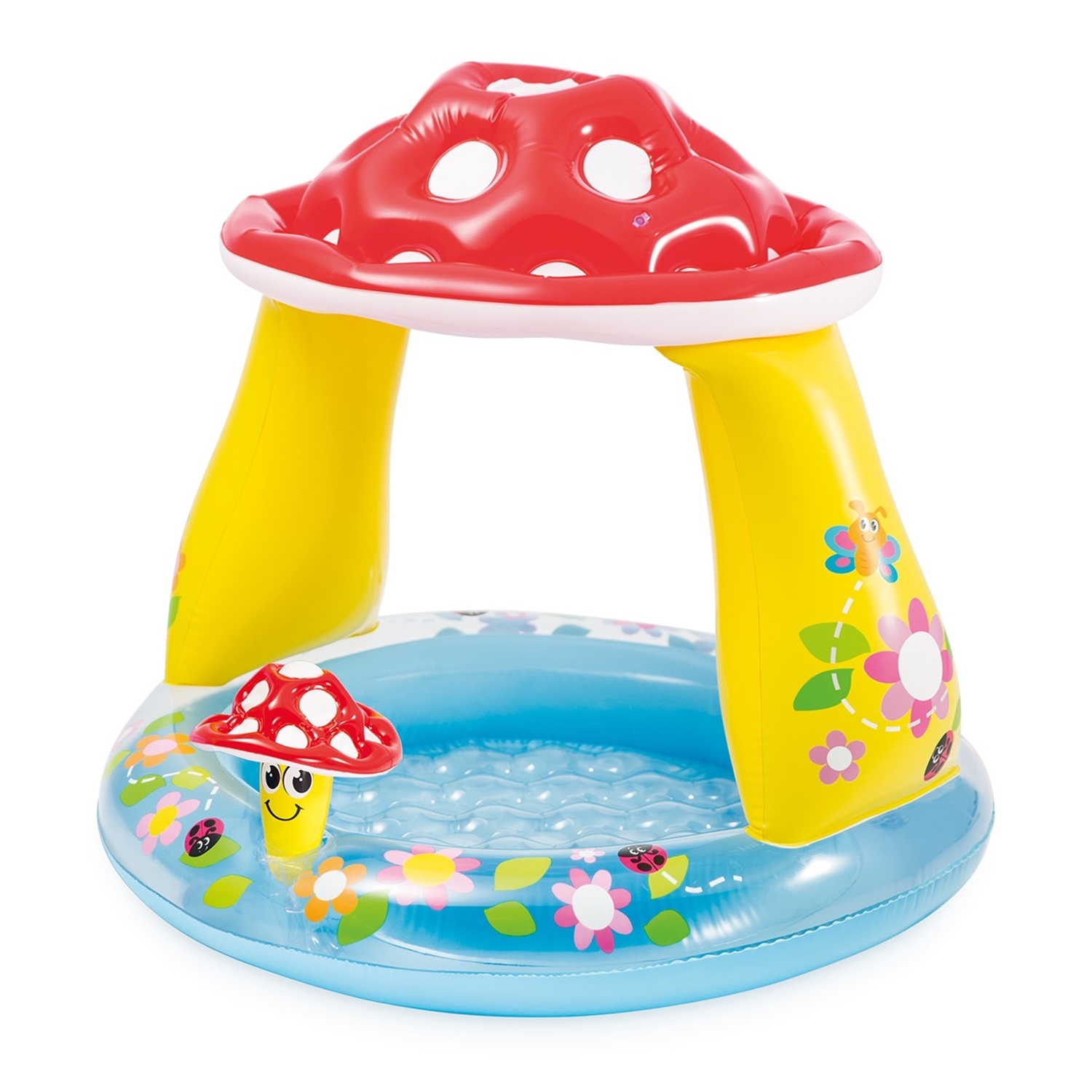 Dieser Babypool bringt eine herrliche Abkühlung für die Kleinen! Das Pilzdach bietet Schatten und das fröhlich-bunte Design lädt die Kleinen zum Spielen und Planschen ein.