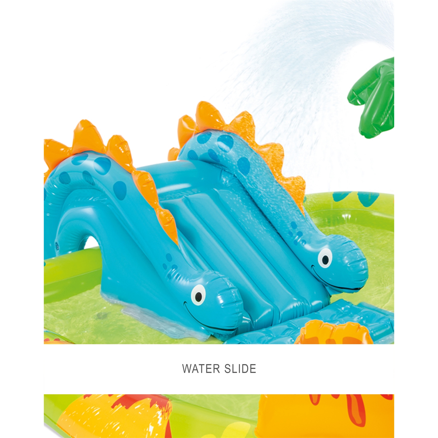 Das Spielcenter „Little Dino Play Center“ von Intex mit Wasserrutsche (Gewichtslimit 54 kg) lädt zum Planschen und Spielen ein.