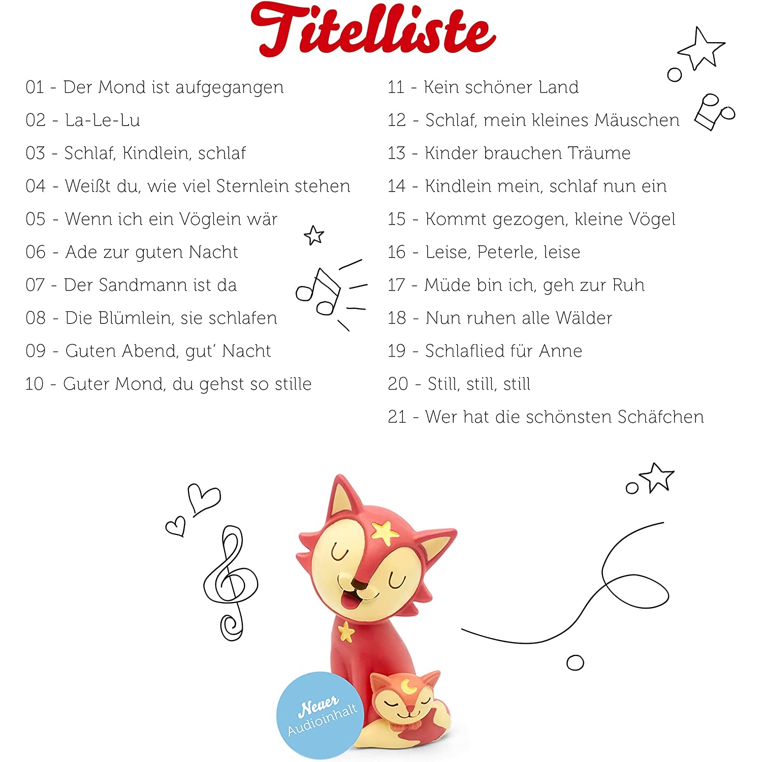 Der Bestseller-Tonie erhält eine ausgesuchte Zusammenstellung der beliebtesten traditionellen Schlaflieder für Kinder.