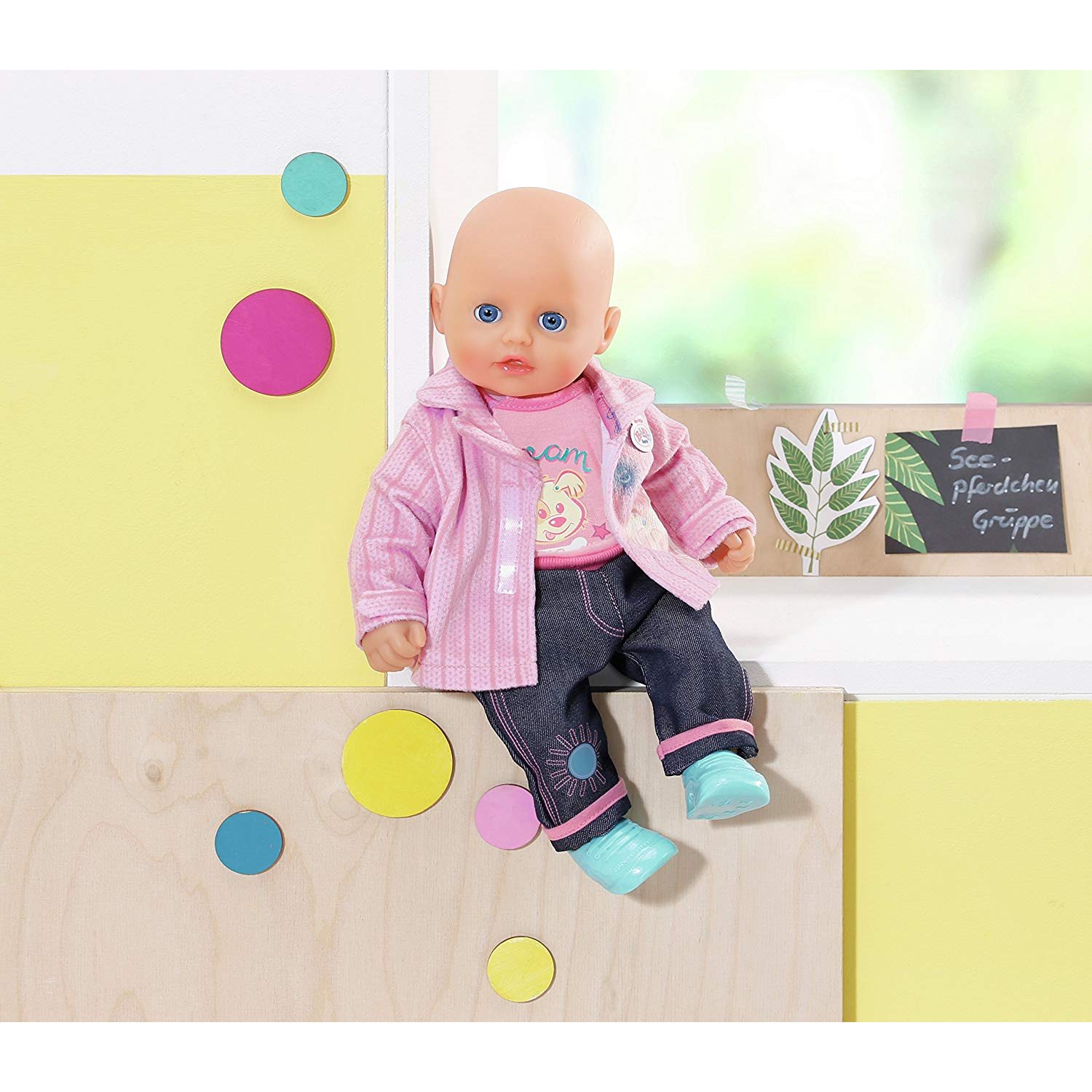- My Little BABY born® Kita Outfit aus Overall, Jacke und Schuhen. Inklusive farblich passendem Kleiderbügel.